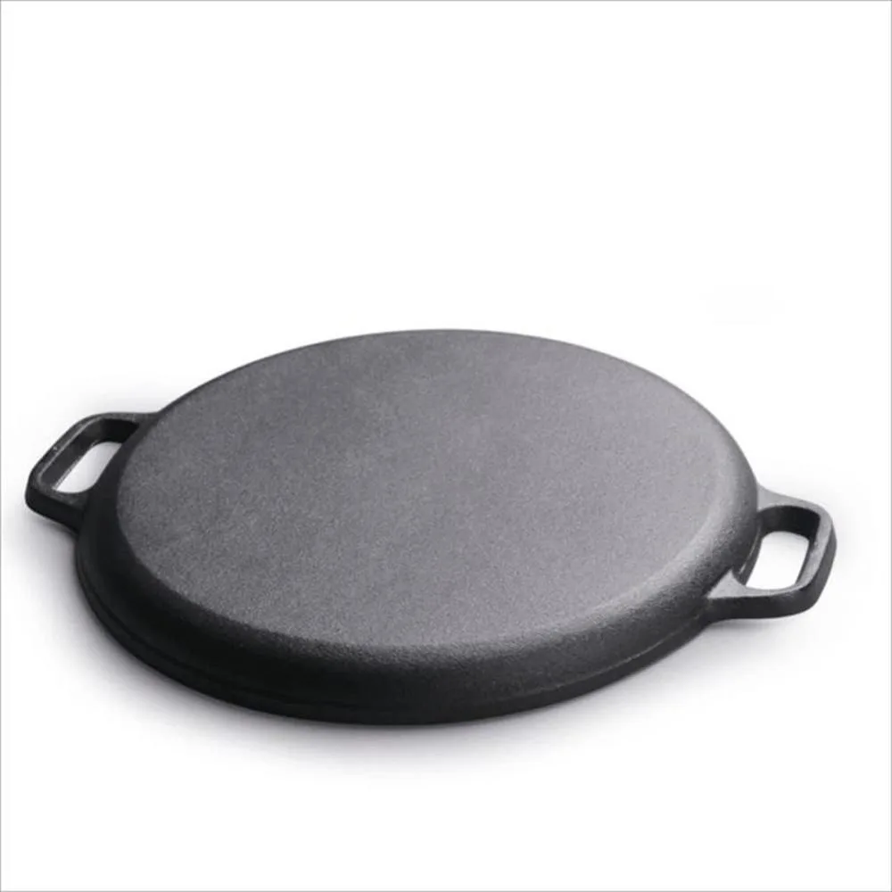 Cast Iron Round Frying Pan 35cm - Double Handle Grill for Pizza & Pancakes | StriveRiseFit