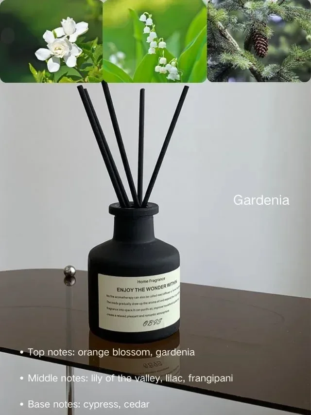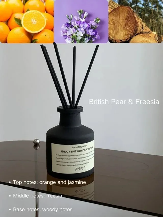 Premium 50ml freesia jasmine essential oil reed diffuser for home aromatherapy. Flameless fragrance oil with diffuser sticks for natural room air freshening and decor.