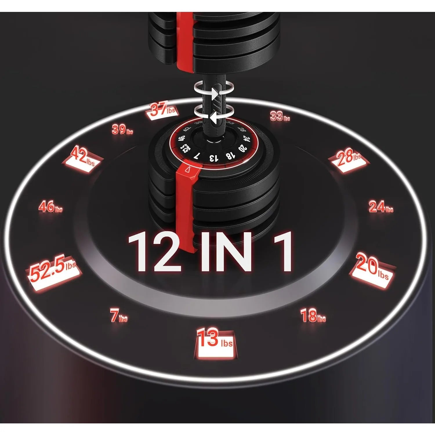 - 12-IN-1 ADJUSTABLE DUMBBELLS:This dumbbell set spans a wide weight range from 7 lb to 52.5 lb in diverse and smaller increments to facilitate gradual resistance, intensity, or volume adjustments.