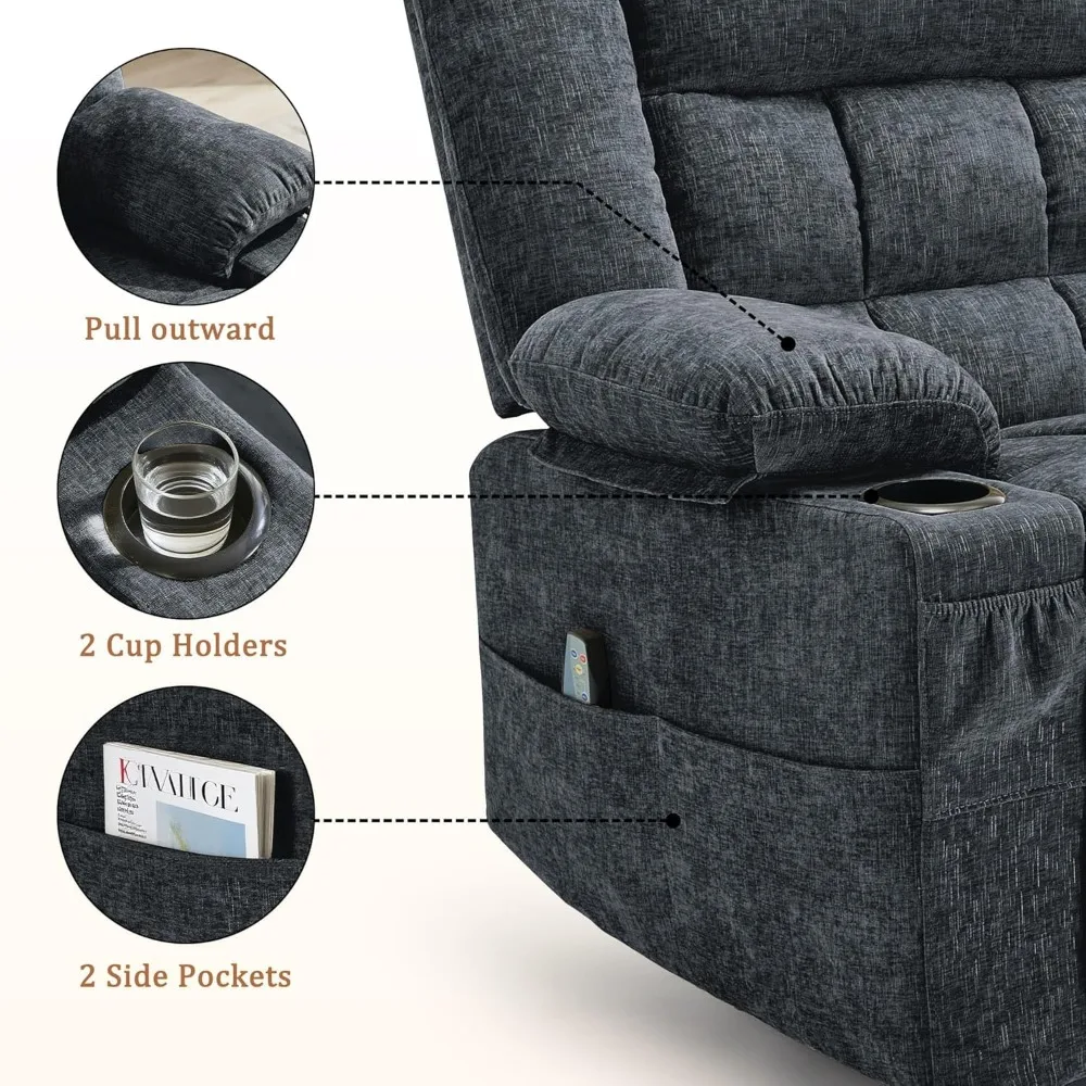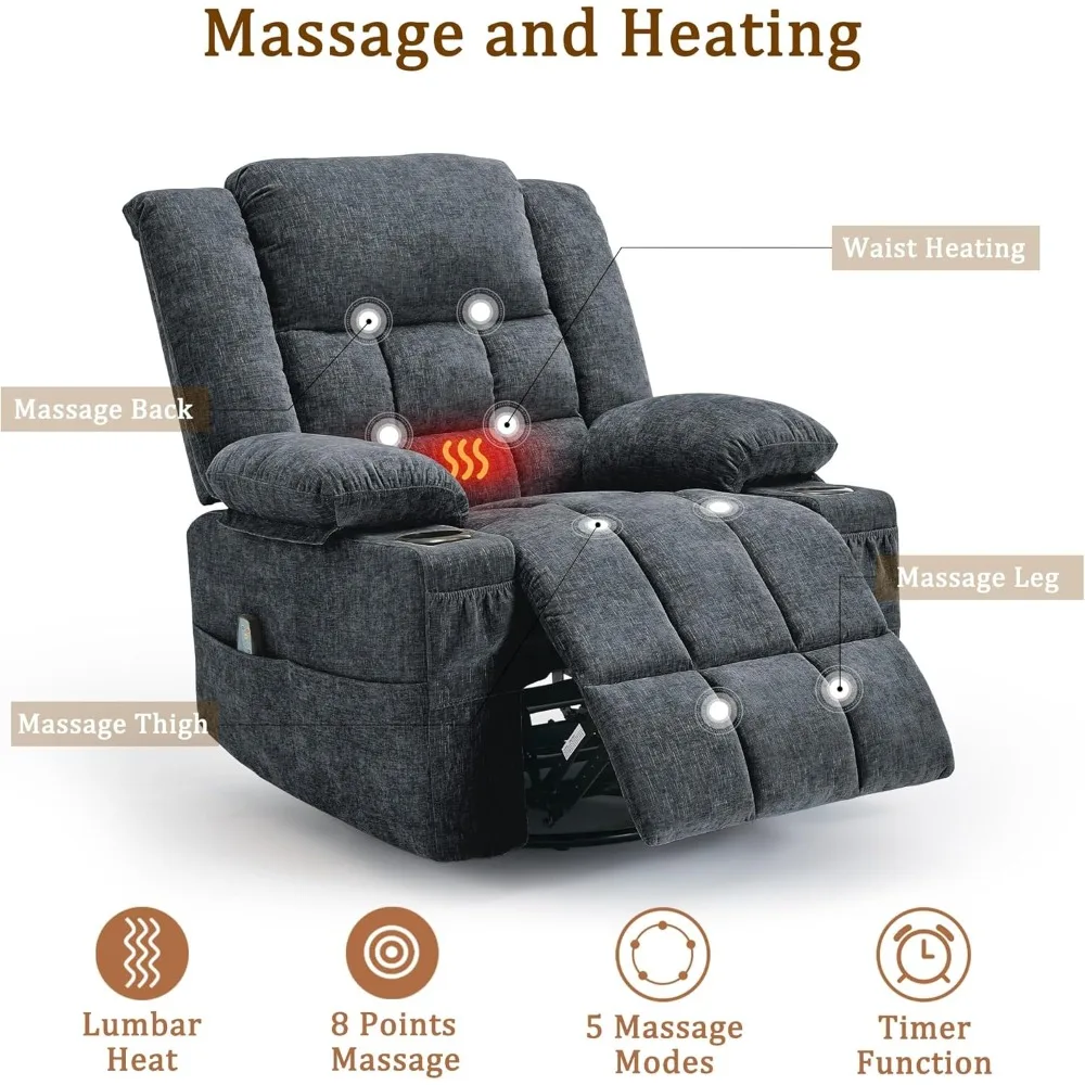 Premium swivel rocker recliner with built-in massage, heating function, and convenient cup holder. Ultimate comfort and relaxation for your home. Shop now!