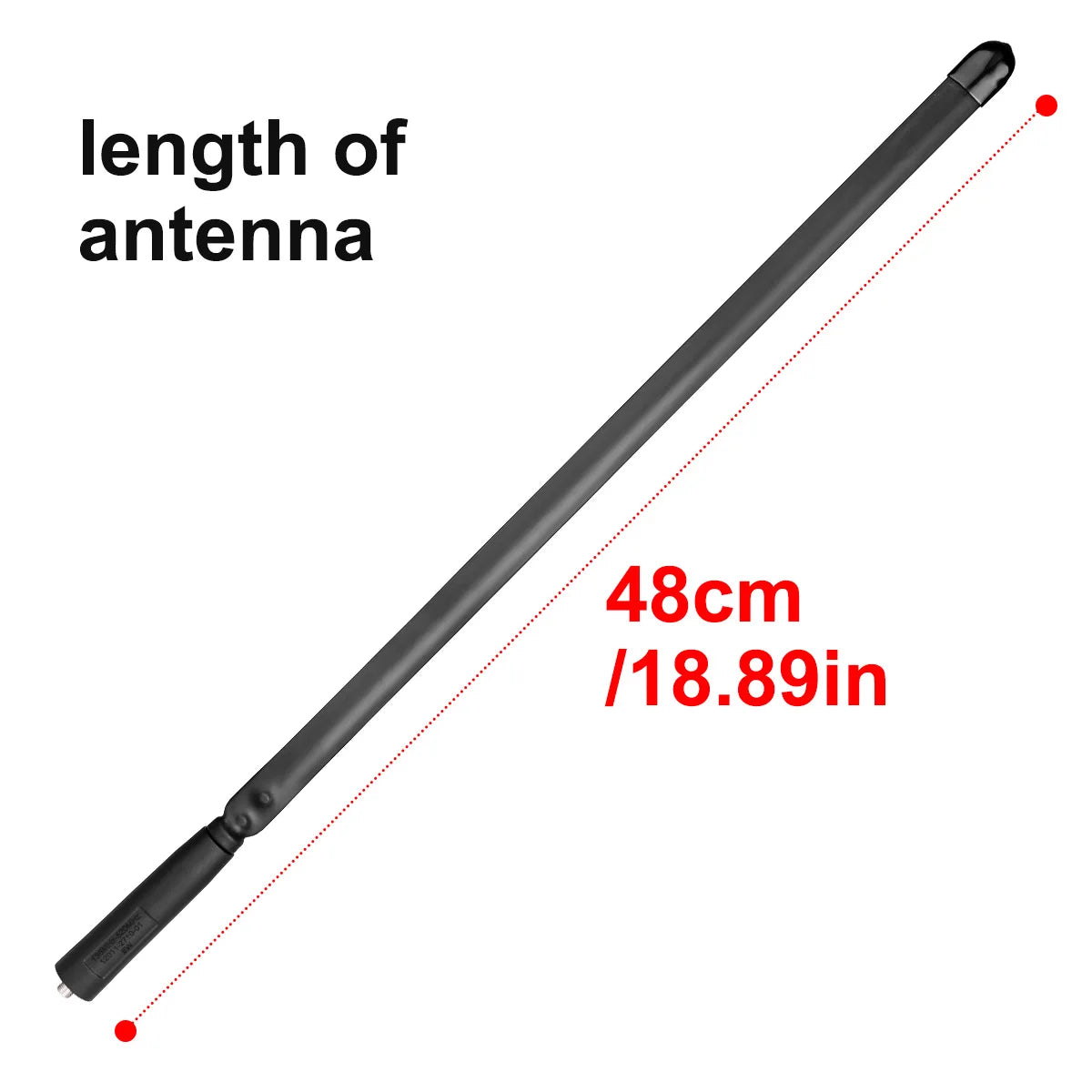 Tactical foldable whip antenna with gooseneck design for BAOFENG UV-82, Kenwood, TYT, and Retevis radios. Dual-band VHF/UHF 144/430MHz. SMA-Female connector. Durable and portable.