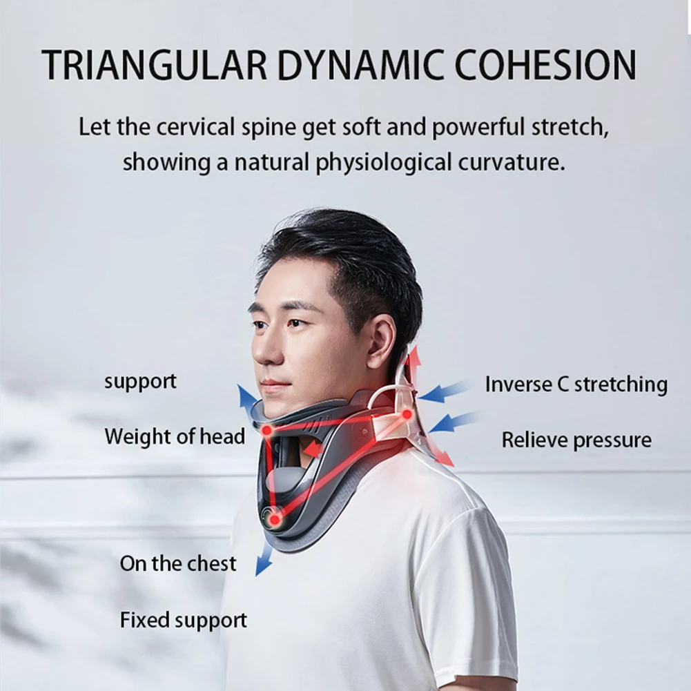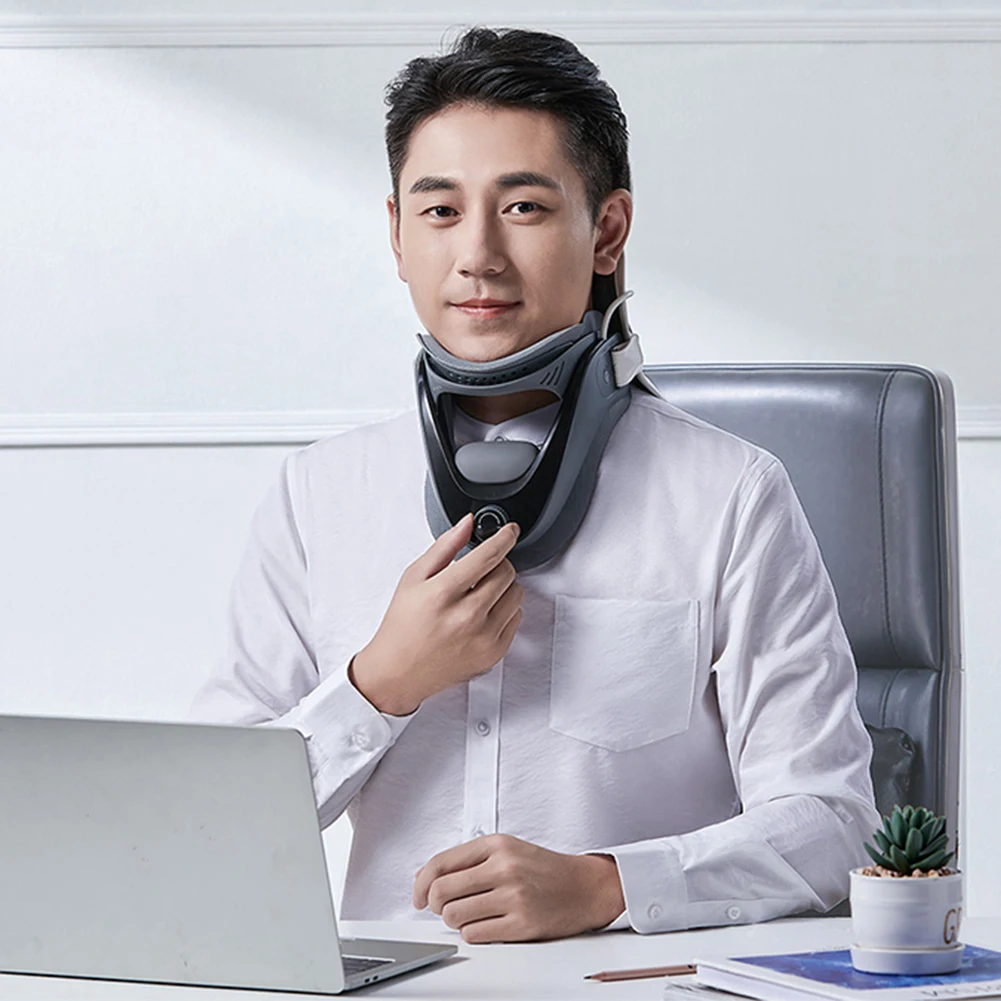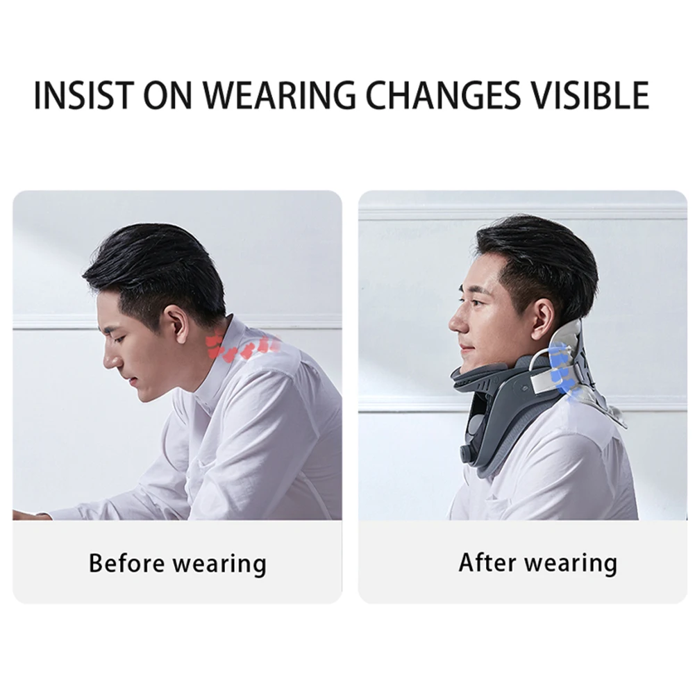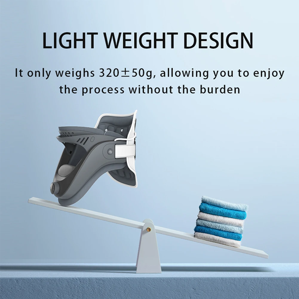 1. Effective Decompression: This neck brace provides effective decompression by relieving nerve pressure and restoring the natural curvature of the neck. This helps alleviate symptoms like dizziness, limb weakness, and numbness, providing relief for individuals with cervical spine issues. 2. Innovative Design: The cervical traction device is equipped with a safety airbag support system that offers comfortable traction. This allows users to wear it during various activities such as walking, studying, or watching TV, without compromising their daily routines. 3. Comfortable and Breathable: The ergonomic neck stretcher features an ergonomic V-shaped design that helps improve neck posture. Additionally, the breathable fabric enhances comfort by preventing overheating and discomfort. The detachable parts make it easy to clean and maintain. 4. Wireless Airbag Support: Unlike traditional devices that require a wired air pump, this neck and shoulder relaxer has an integrated airbag support system. This wireless design enhances portability and convenience, making it easier to use on-the-go. 5. High-pressure Safe Airbag: The cervical neck traction device utilizes six air columns to provide targeted support and promote spinal space. This helps relieve head pressure and supports the cervical spine, ensuring a safe and effective traction experience.