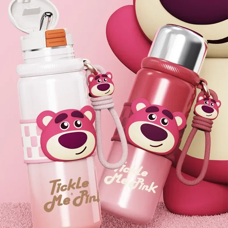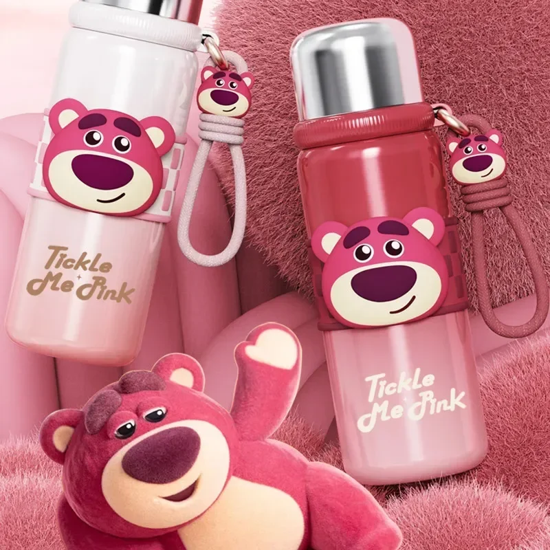 Disney Story Strawberry Bear 600ML Vacuum Flask - Double Lid Thermos Cup