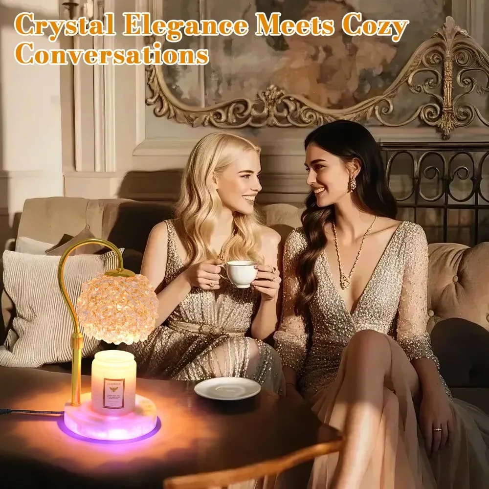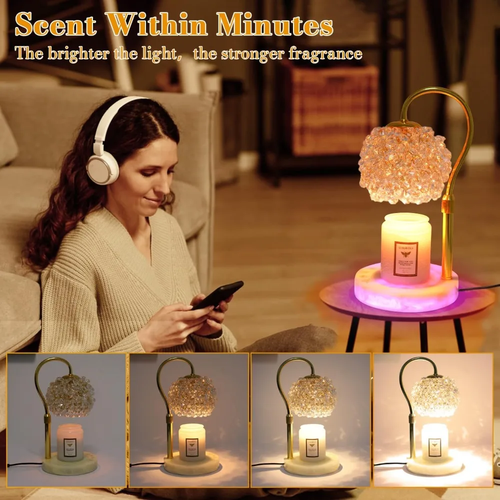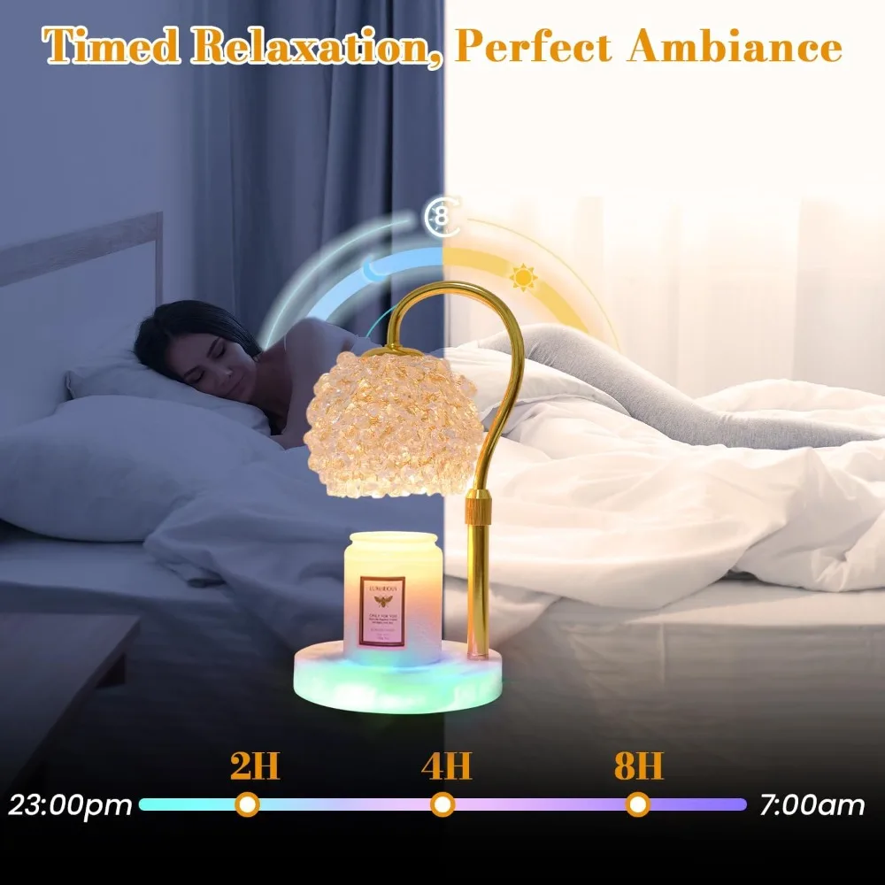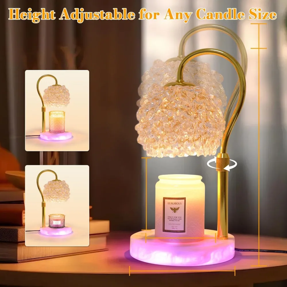 Premium electric candle lamp warmer with RGB mood lighting and K9 crystal lampshade. Safe flameless candle melting for aromatherapy and home decor.