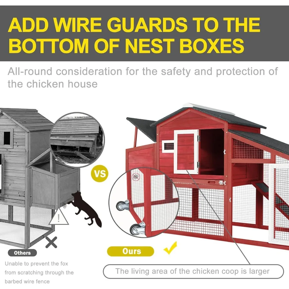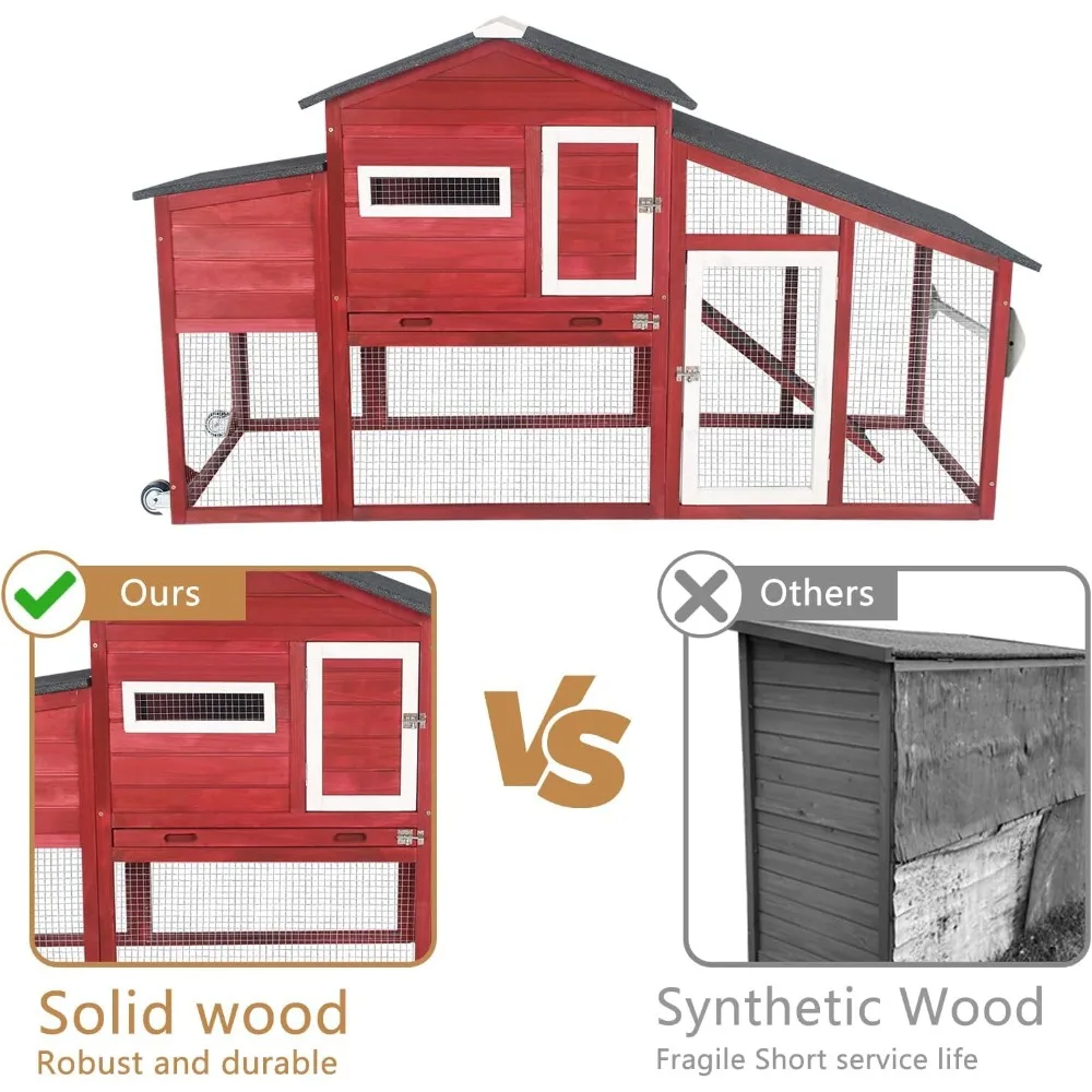 Large Wooden Chicken Tractor with Wheels, Waterproof Outdoor Hen House, Poultry Cage for Backyard Chicken Coop with Run