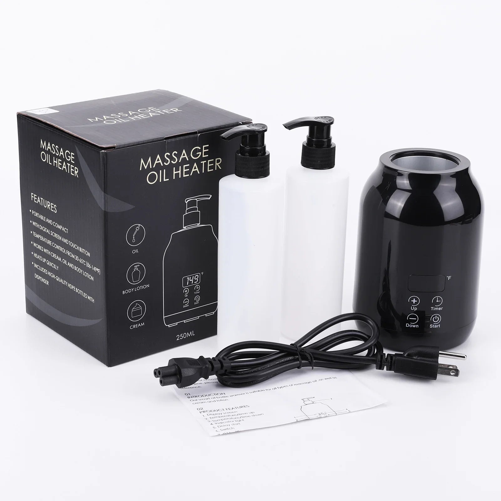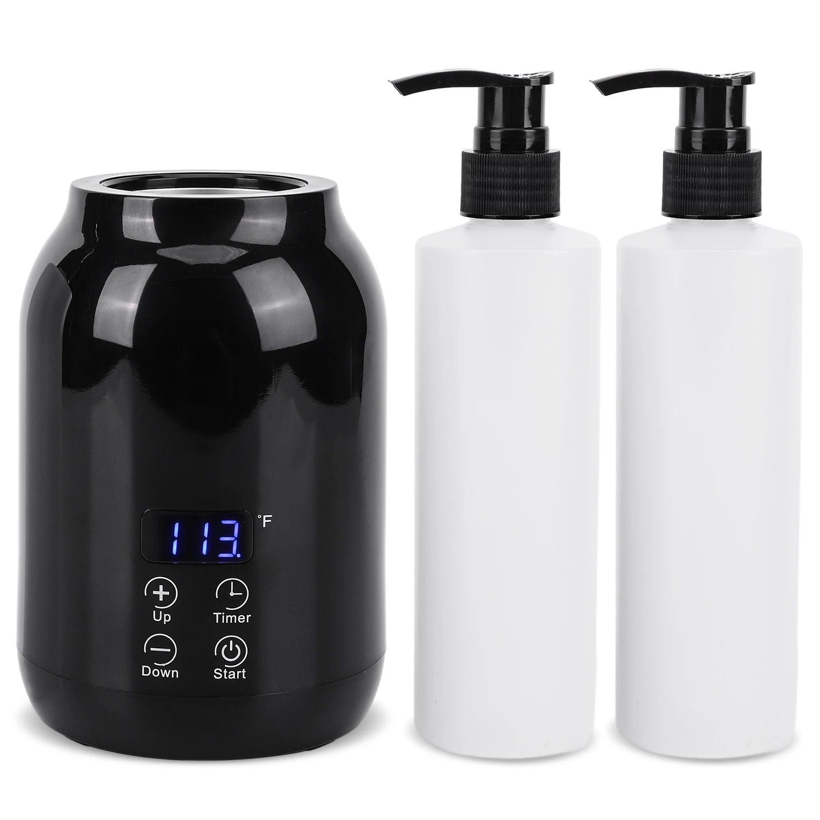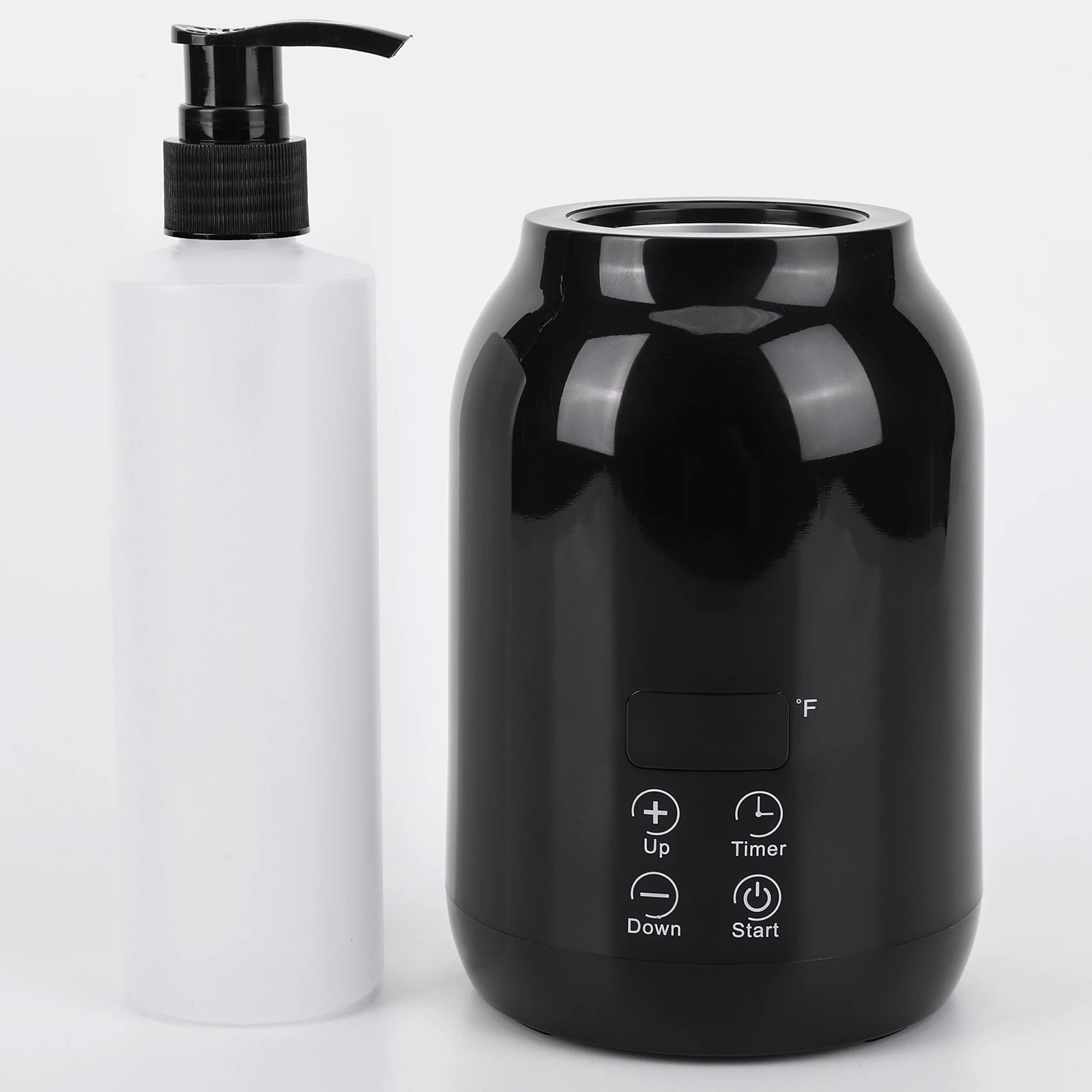 Professional electric massage oil warmer with LED display and timer. Quickly heats lotion and cream to the perfect temperature for spa-quality massages. Easy to use and control.