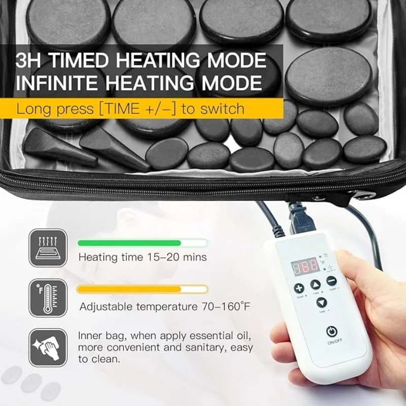 Portable Massage Stone Warmer Set - 20 Basalt Stones with Electric Heater