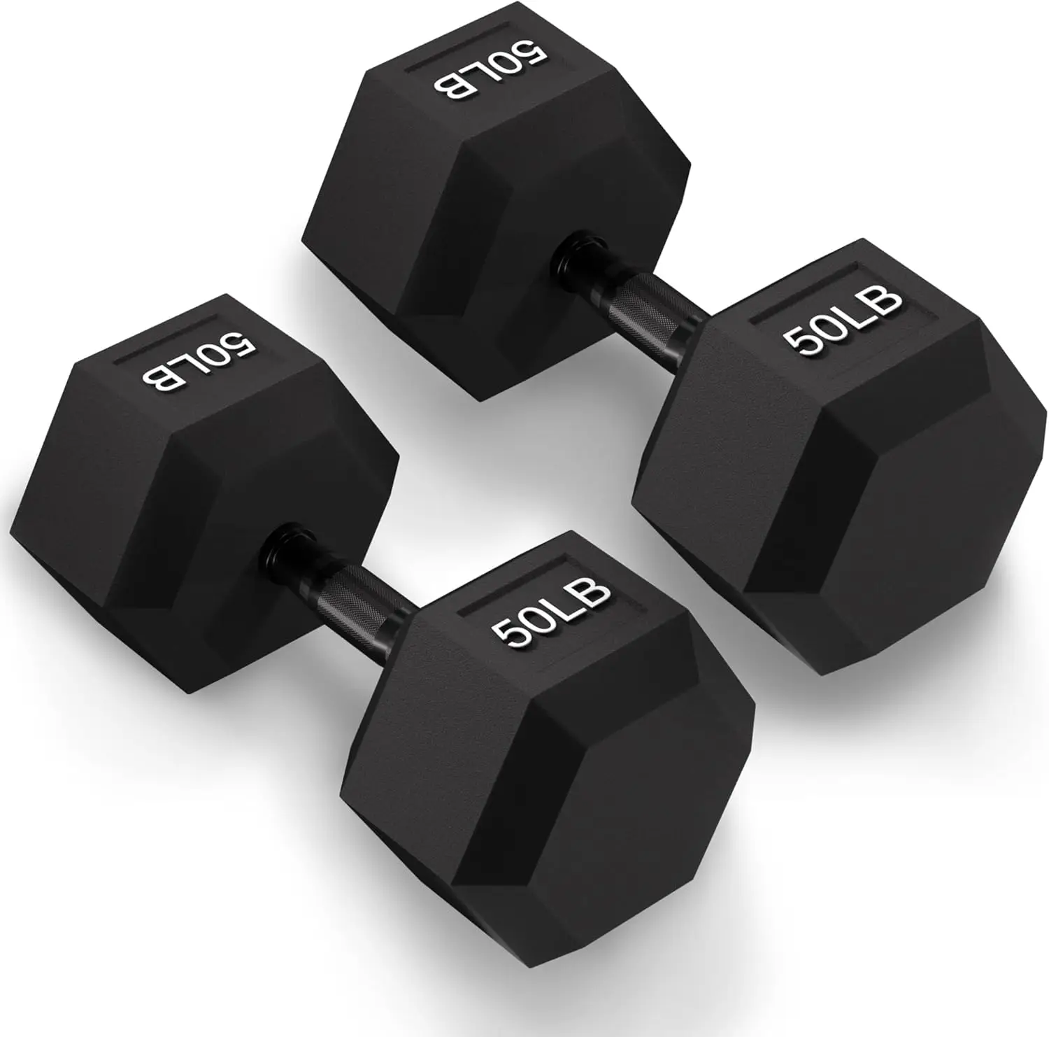 Rubber Encased Exercise & Fitness Hex Dumbbell, Hand Weights with Anti-Slip Metal Handle for Home Gym, Multiple Sizes