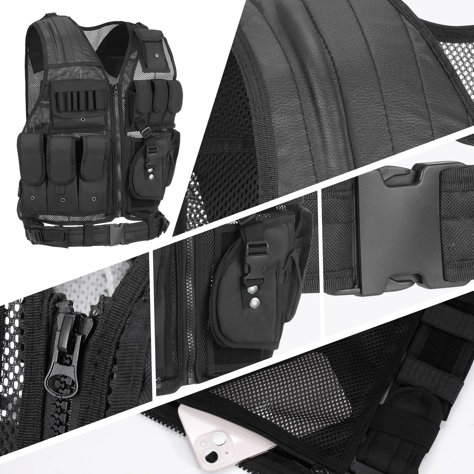 Breathable multi-pocket tactical vest perfect for hunting, camping, and outdoor activities. Durable combat vest with adjustable fit and ample storage for all your gear.