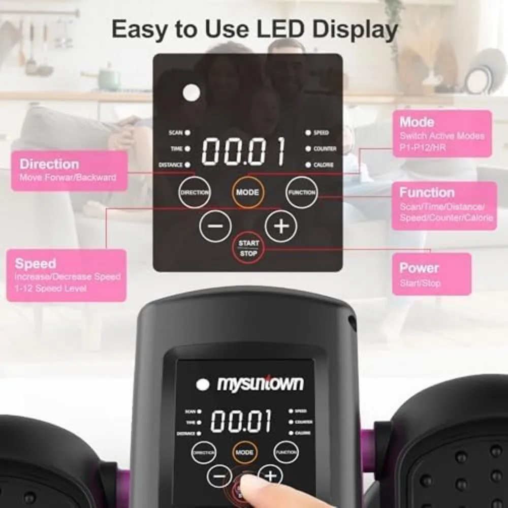 - 【Dual Modes for Custom Workouts】Ellipse exercise machine switches Forward/Reverse directions between Manual mode (P1-P12 speed control) and Auto mode (P1-P12 speed control). Both modes automatically pause after 15 minutes of use (extendable to 30 mins). The auto mode mixes speed changes every 1-3 mins for full-leg activation without manual adjustments. Perfect for toning specific muscles or keeping legs active while working.
